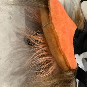 Foam clay nose painted with acrylic and sealed with krylon, attached with a wire)