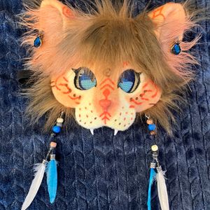 EVA foam mask, fully lined, removable feather charms, earrings, and plastic teeth!